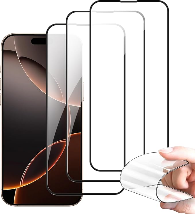xBUCKKO Ceramic Film Screen Protector for iPhone 16 Pro, HD Transparent, Anti-Fingerprint, Scratch-Resistant, Full Coverage, No Broken Edges, PET Material, Glossy Finish- 1PackFull screen protection from common key or knife scratching & higher level impact protection. Suitable for everyday use.