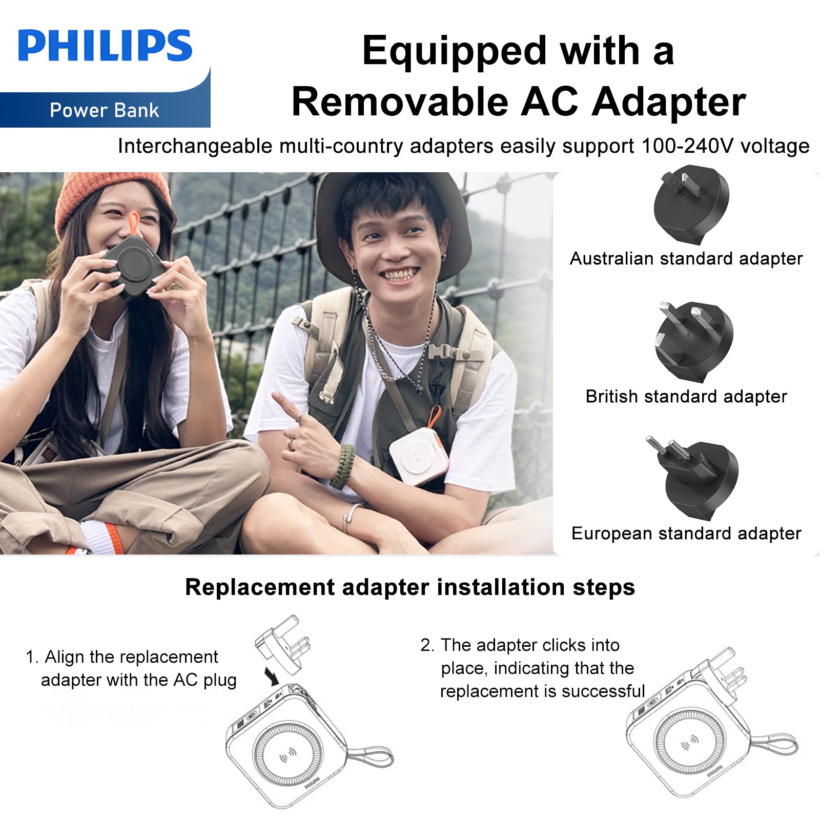- Global Portability Designed for travel, the 10-in-1 powerBank includes interchangeable adapters for global use and a convenient travel pouch to keep your charging essentials organized. Bring it with you anywhere of the world, so you will never run out of power.