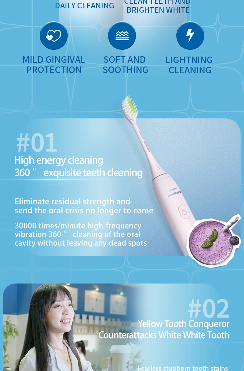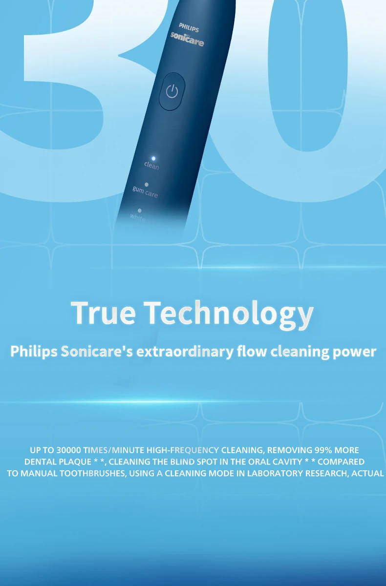 • 10000 to 30000 movements per minute :The toothbrush has a high number of movements per minute, ensuring thorough cleaning of your teeth.