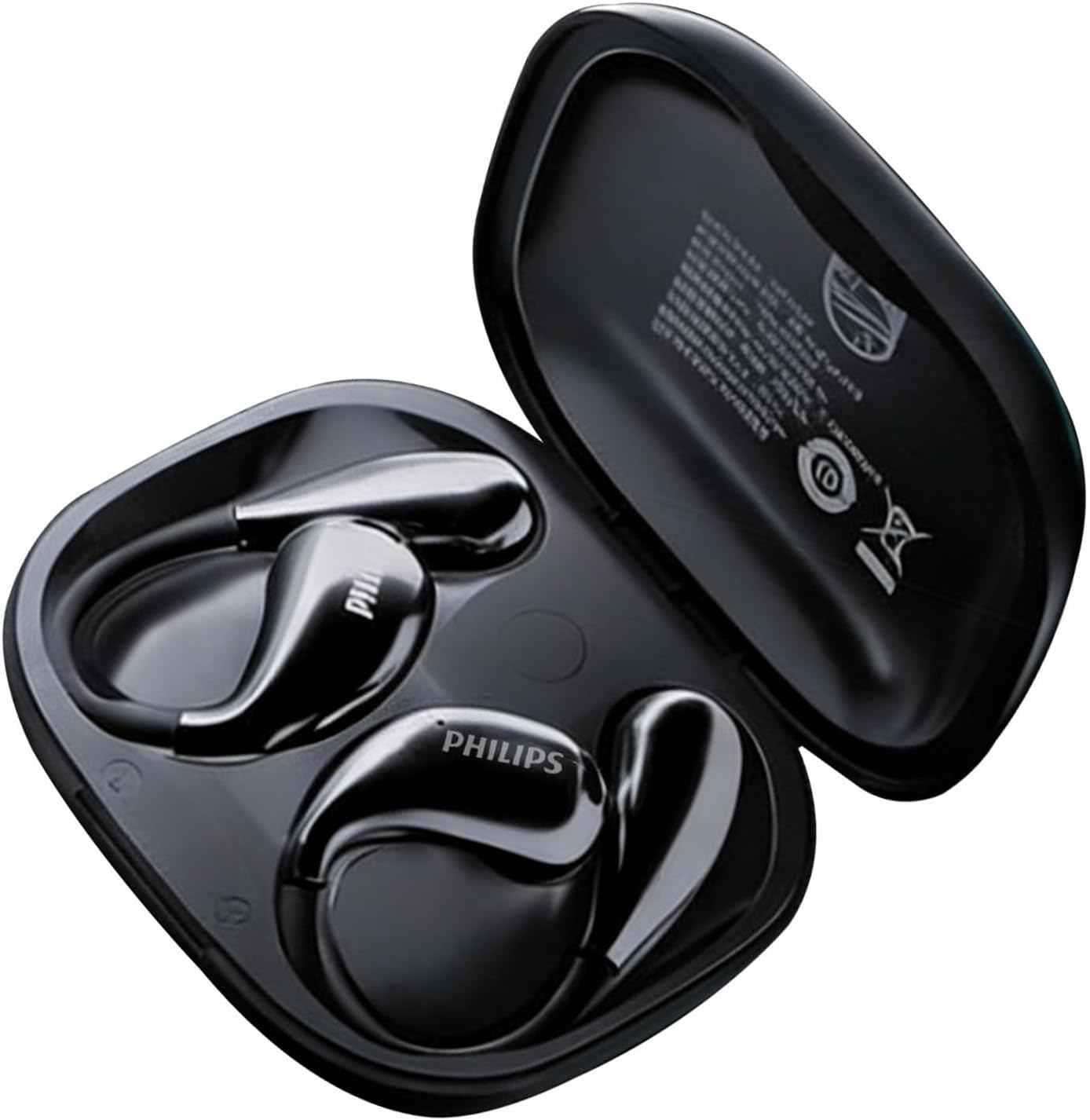 xPhilips Open‑Ear Bluetooth Earbuds / Earphone / Headphone, Adjustable Ear Hooks, Strong Bass, Clear Calling, LED Effects, IP55 Water Resistance & 36H Battery – Black
