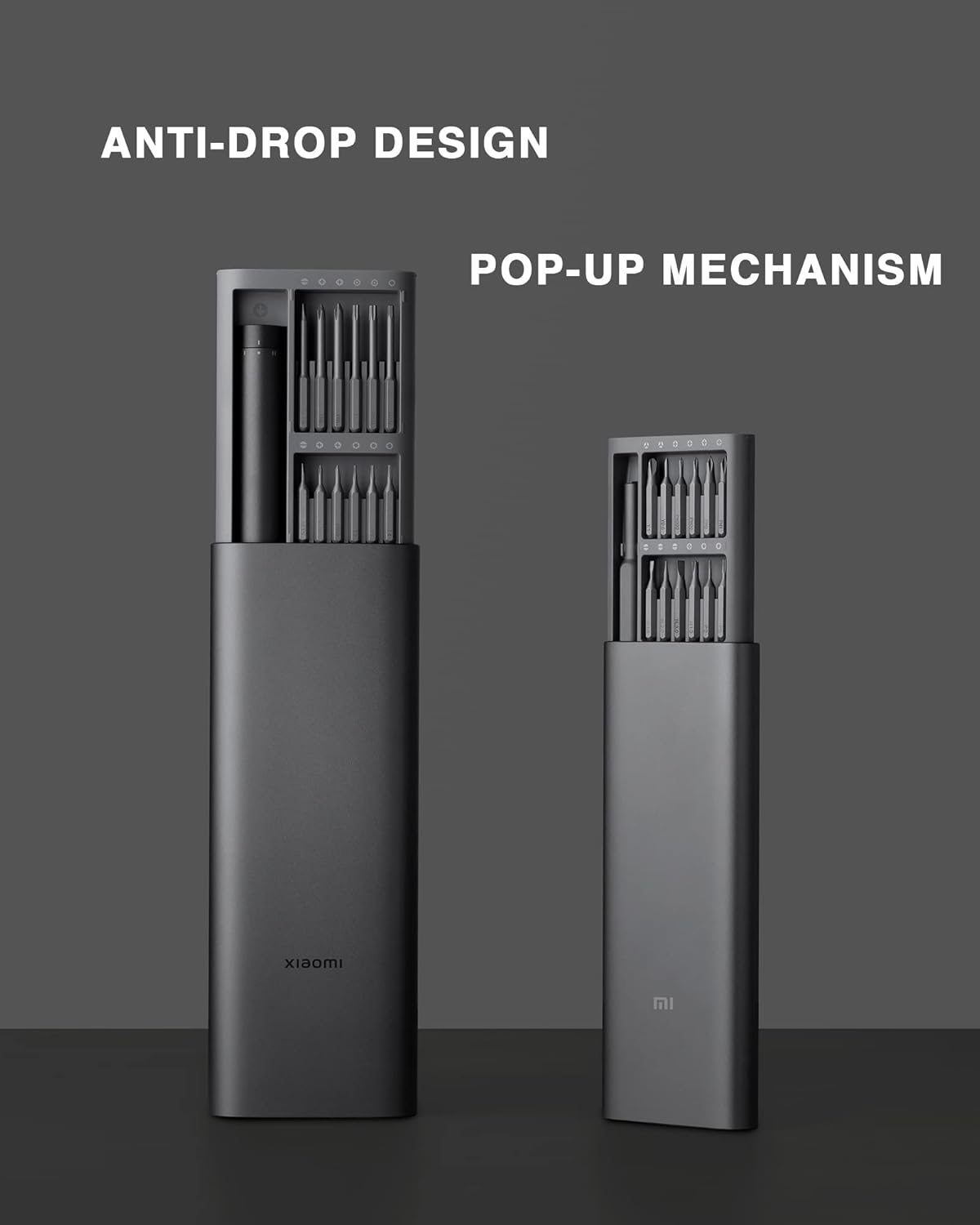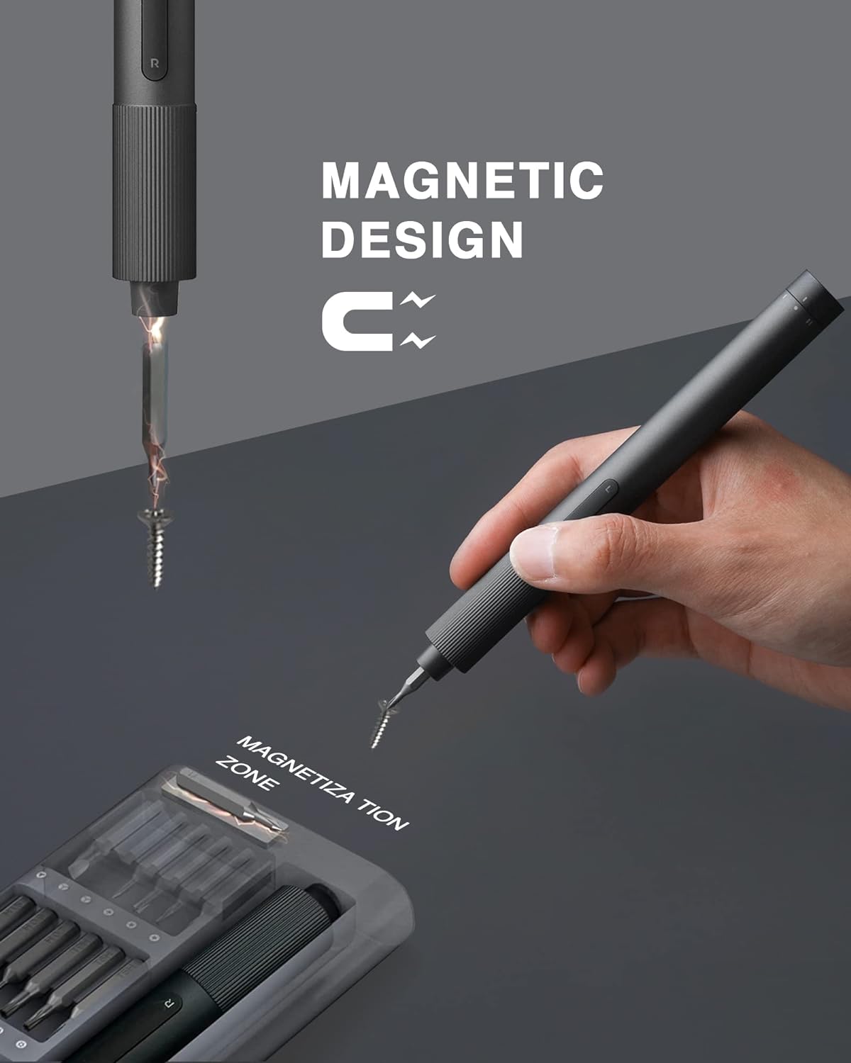 - ⚡Compact and Ergonomic Design: Features a lightweight aluminium alloy case with a push-to-release magnetic storage container for easy bit access.