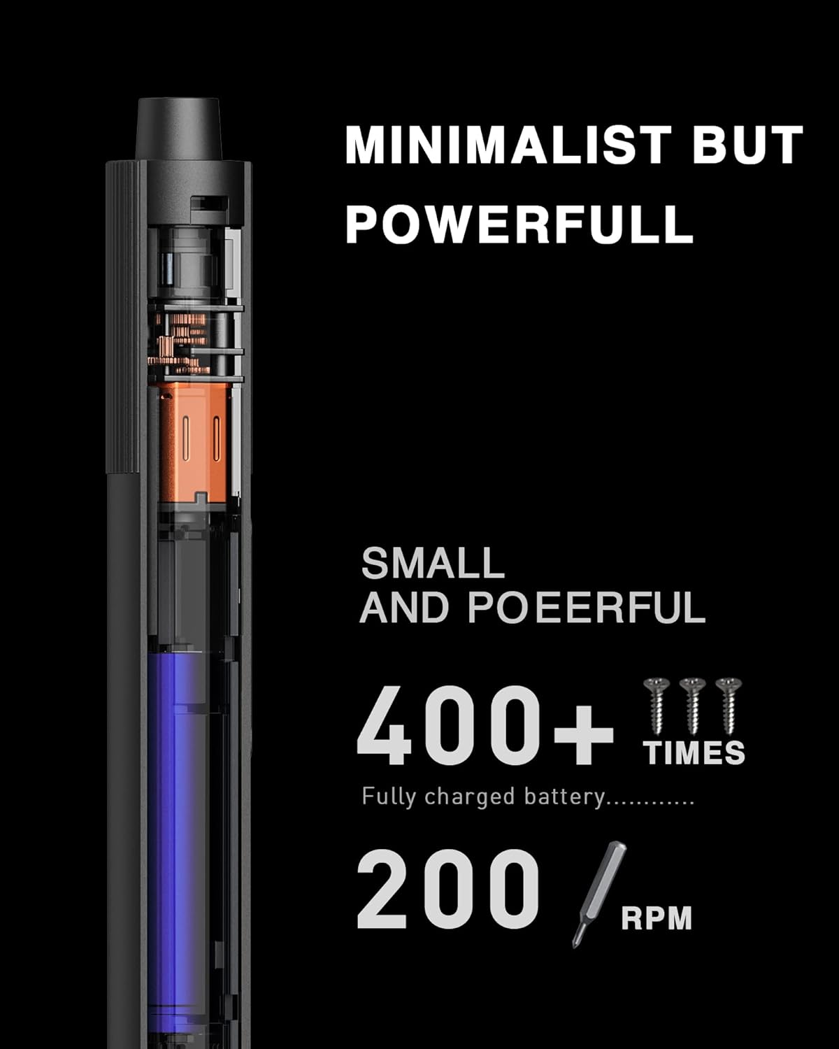 - ⚡Long Battery Life: The built-in rechargeable lithium battery can handle over 400 precision screws on a single charge.